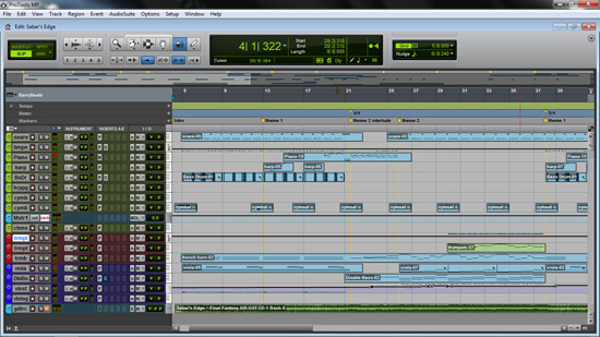After installing the whole East West orchestral pack, I was anxious to try and learn and start using it. Instead of trying to create something from scratch, I thought it might be beneficial to do a study of another song. I tried to pick a song that had a fair amount of complexity and instruments, so I could give a stress test on my machine. I picked a song by composer Masahashi Hamauzu titled “Saber’s Edge”.