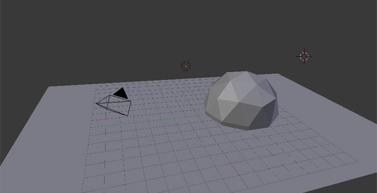 - Create a sphere and a plane on your scene. Position it similar to the image above. Blender calls spheres “ico spheres” . Here is my setup below